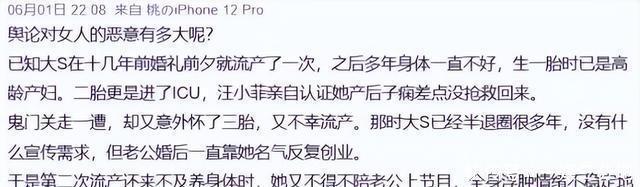 在生一胎的时候大S就已经是高龄产妇,生二胎时更是一度进入ICU并患上了十分危险的产后子痫,汪小菲曾公开表示大S差点因为生二胎没能抢救回来。